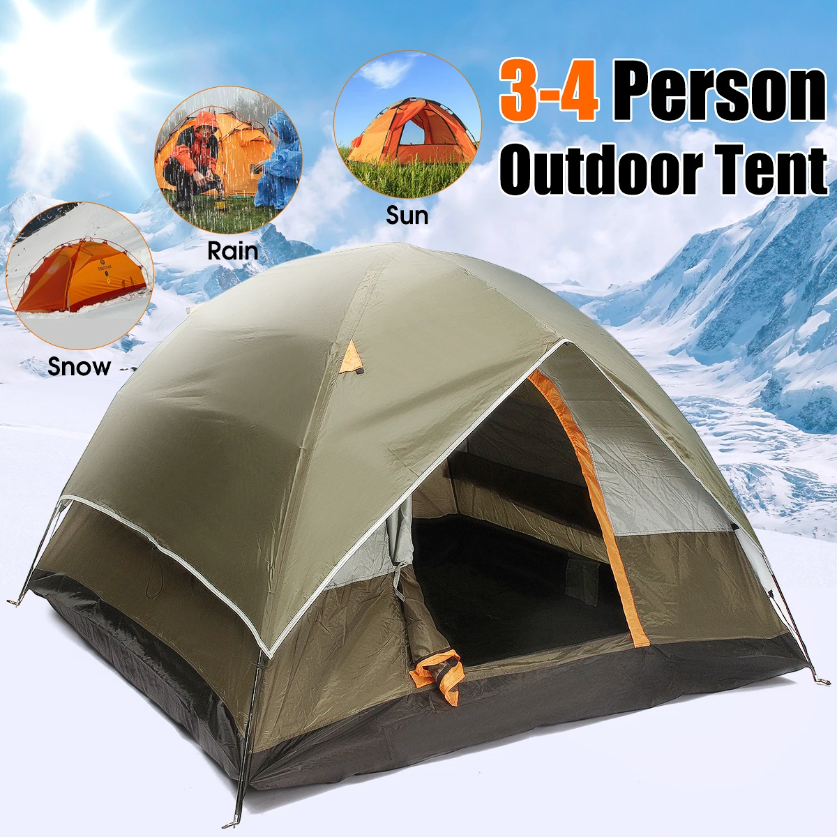 .[image] for 4 Person Double layer Tents Waterproof UV Weather Resistant Family Outdoor Fishing Hunting Party Ca